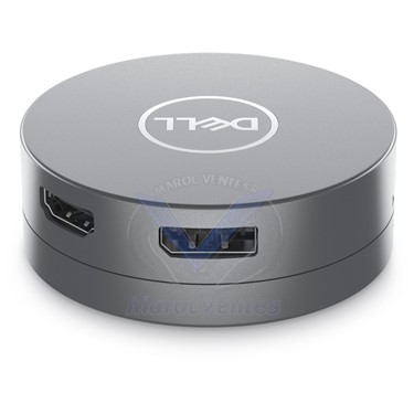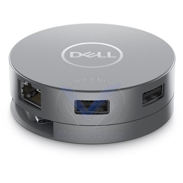 vaste choix de ports, notamment 2 ports USB-A, 1 port USB-C, 1 port HDMI, 1 port DisplayPort et 1 port RJ-45. L’adaptateur mobile offre une connectivité transparente à divers appareils tels que les écrans, les projecteurs, les casques, les claviers, les souris, les lecteurs Flash et d’autres accessoires.Port USB-C multifonction :avec un port USB-C descendant qui prend en charge la passerelle d’alimentation, la vidéo et les données, vous pouvez vous connecter à un écran avec une résolution maximale de 4K à 30 Hz, bénéficier d’un transfert de données rapide et d’une passerelle d’alimentation jusqu’à 90 W vers votre ordinateur portable.Résolution 4K nette à 60 Hz :connectez-vous à des écrans haute résolution sans compromettre les performances. Il vous suffit de connecter votre écran ou votre projecteur à votre ordinateur via un port DisplayPort ou HDMI 2.0 de votre adaptateur.Transferts de données accélérés :deux ports USB-A et un port USB-C descendants vous permettent de vous connecter à d’autres périphériques pris en charge et de bénéficier de transferts de fichiers rapides.Adaptateur multiport USB-C Dell - DA305 - Guide produit (en anglais)Conception innovante brevetéeConception innovante brevetéeGestion flexible des câbles : profitez d’une gestion des câbles unique avec sa conception brevetée qui permet de garder le câble dissimulé et protégé lorsqu’il n’est pas utilisé.Étendez ou rétractez facilement le câble USB-C en faisant pivoter le capot supérieur et inférieur de l’adaptateur.Connectez-vous où que vous soyezConnectez-vous où que vous soyezLéger et portable : le plus petit et le plus léger des adaptateurs 6-en-1 est à peu près de la taille de votre paume, ne prend pas de place et se range facilement dans votre poche ou dans votre sac.Connexion stable : Le câble coaxial rond offre une qualité de signal améliorée pour assurer une connectivité stable dans tous vos déplacements professionnels.Haute fiabilitéHaute fiabilitéRestez productif : la fonctionnalité de permutation rapide de rôle prise en charge par l’adaptateur multiport garantit une connectivité vidéo et LAN sans interruption, même si la source d’alimentation USB-C est retirée de l’adaptateur.Grande compatibilité : compatible avec un large éventail de systèmes d’exploitation de premier plan, notamment Windows 10 64 bits, MAC, Ubuntu, Chrome et RHEL, l’adaptateur assure une connectivité transparente avec pratiquement tous les ordinateurs.Limitez les interruptions de service :service d’échange avancé de 3 ans de classe mondiale de Dell.Caractéristiques techniques