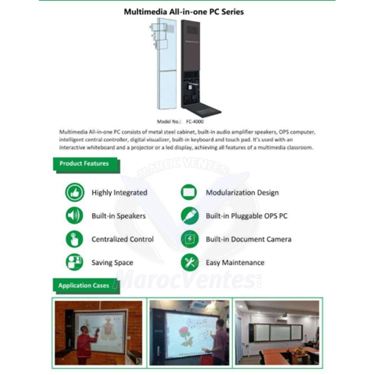 Le PC tout-en-un multimédia se compose d'une armoire en acier métallique, de haut-parleurs amplificateurs audio intégrés, d'un ordinateur OPS, d'un contrôleur central intelligent, d'un visualiseur numérique, d'un clavier intégré et d'un pavé tactile.