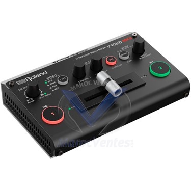 Laissez tomber votre webcam et améliorez vos diffusions en direct grâce au Mélangeur de streaming V-02HD MKII. Compact, économique et facile d'utilisation, cet appareil au format Desktop vous permet de connecter et commuter deux caméras HDMI haute qualité, et d'envoyer directement les images sur votre plateforme de streaming favorite via USB-C. Vous pouvez également mixer les sources audio connectées aux entrées dédiées ou par HDMI, et appliquer des effets vidéos et des transitions. Grâce au V-02HD MKII, vous disposez de l'interface dont vous avez besoin pour améliorer la qualité de vos productions vidéo diffusées en direct.