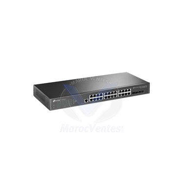 Switch géré Tplink JetStream™ 24 ports Gigabit L2+ avec 4 emplacements SFP+ 10GEPORT : 24 × ports Gigabit RJ45, 4 × emplacements SFP+ 10G, port de console RJ45/Micro-USBSPEC : boîtier en acier montable en rack 1U de 19 poucesCARACTÉRISTIQUE : intégration avec Omada Contrôleur SDN, routage statique, OAM, sFlow, DDM, VLAN 802.1Q, QinQ, STP/RST P/MSTP, surveillance IGMP, QoS 802.1p/DSCP, ACL, 802.1x, authentification Radius/Tacacs+, LACP, CLI, SNMP, Double image/configuration, IPv6Liaison montante ultra rapide 10G: 4x emplacements SFP+ 10 Gbps permettent une connectivité à large bande passante et une capacité de commutation non bloquante.Débit Gigabit: 24 ports Gigabit RJ45 offrent des connexions fiables et à haute vitesse vers d'autres commutateurs et appareils.Intégré dans Omada SDN : Zero-Touch Provisioning (ZTP) * , gestion centralisée du cloud et surveillance intelligente.Administration centralisée : accès au Cloud et application Omada pour plus de commodité et une gestion facile.Routage statique : aide à acheminer le trafic interne pour une utilisation plus efficace des ressources réseau.Stratégies de sécurité robustes : liaison IP-MAC-port, ACL, sécurité des ports, DoS Defend, contrôle des tempêtes, surveillance DHCP, 802.1X, authentification Radius, etc.Optimisez les applications vocales et vidéo : QoS L2 / L3 / L4 et surveillance IGMP.Gestion autonome : Web, CLI (port de console, Telnet, SSH), SNMP, RMON et Dual Image offrent de puissantes capacités de gestionGarantie 1 an.Caractéristiques Techniques
