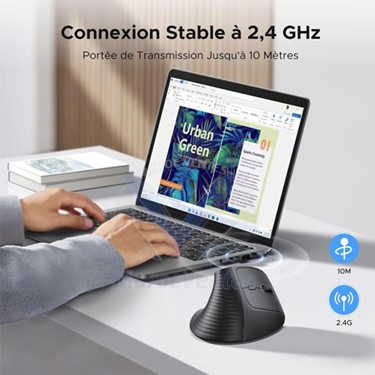 LIBERTÉ SANS FIL La souris verticale UGREEN offre une portée maximale de 10 m, vous libérant ainsi des contraintes des câbles.