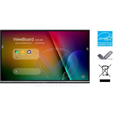 Écran interactif ViewBoard® 55 pouces 4KTechnologie tactile ultra fine offrant jusqu'à 40 points de contact pour une expérience d'écriture semblable à celle d'un stylo sur papierLogiciel de tableau blanc myViewBoard avec des outils pédagogiques attrayantsPartage d'écran via USB-C ou sans fil via myViewBoard Display et ViewBoard Cast avec Airplay et ChromecastContrôle intuitif des appareils à distance et diffusion multimédia avec myViewBoard Manager Système d'exploitation Android 11 alimenté par un processeur octa-core pour une efficacité et une sécurité optimisées (mise à niveau vers Android 13).Conçue pour les enseignants modernes, la série ViewBoard® 50-5 offre une interface intuitive et interactive pour une expérience d'écriture multi-utilisateurs. Grâce à un câble USB-C unique pour une connectivité instantanée et sans souci, les enseignants peuvent brancher et contrôler leurs appareils en toute simplicité tout en poursuivant leurs cours. Élèves et enseignants bénéficient d'une écriture fluide grâce à la technologie Ultra Fine Touch (40 points de contact) et au double stylet disponible en plusieurs couleurs et tailles. Soyez assuré que vos yeux et ceux de vos élèves sont protégés grâce à la technologie Flicker-Free et à un filtre de lumière bleue intégré certifié TÜV pour tous les niveaux de luminosité. Entièrement intégrée à la suite myViewBoard, la série ViewBoard® 50-5 associe matériel et logiciel pour une solution pédagogique complète. Compatible avec une gamme complète d'accessoires, la série ViewBoard® 50-5 vous permet d'enseigner efficacement avec une variété d'outils attrayants.Écriture fluide grâce à la technologie tactile ultra fine
