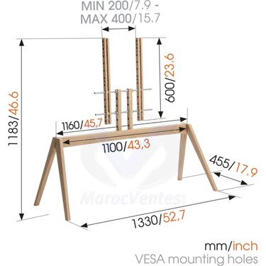 Distance min. au sol - centre écran (mm)  540