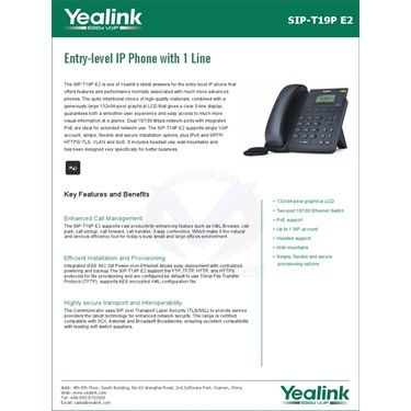 Le téléphone Yealink T19 est un poste IP simple et compact. Il peut gérer 1 compte SIP et est idéal pour les sociétés recherchant un téléphone simple et abordable.